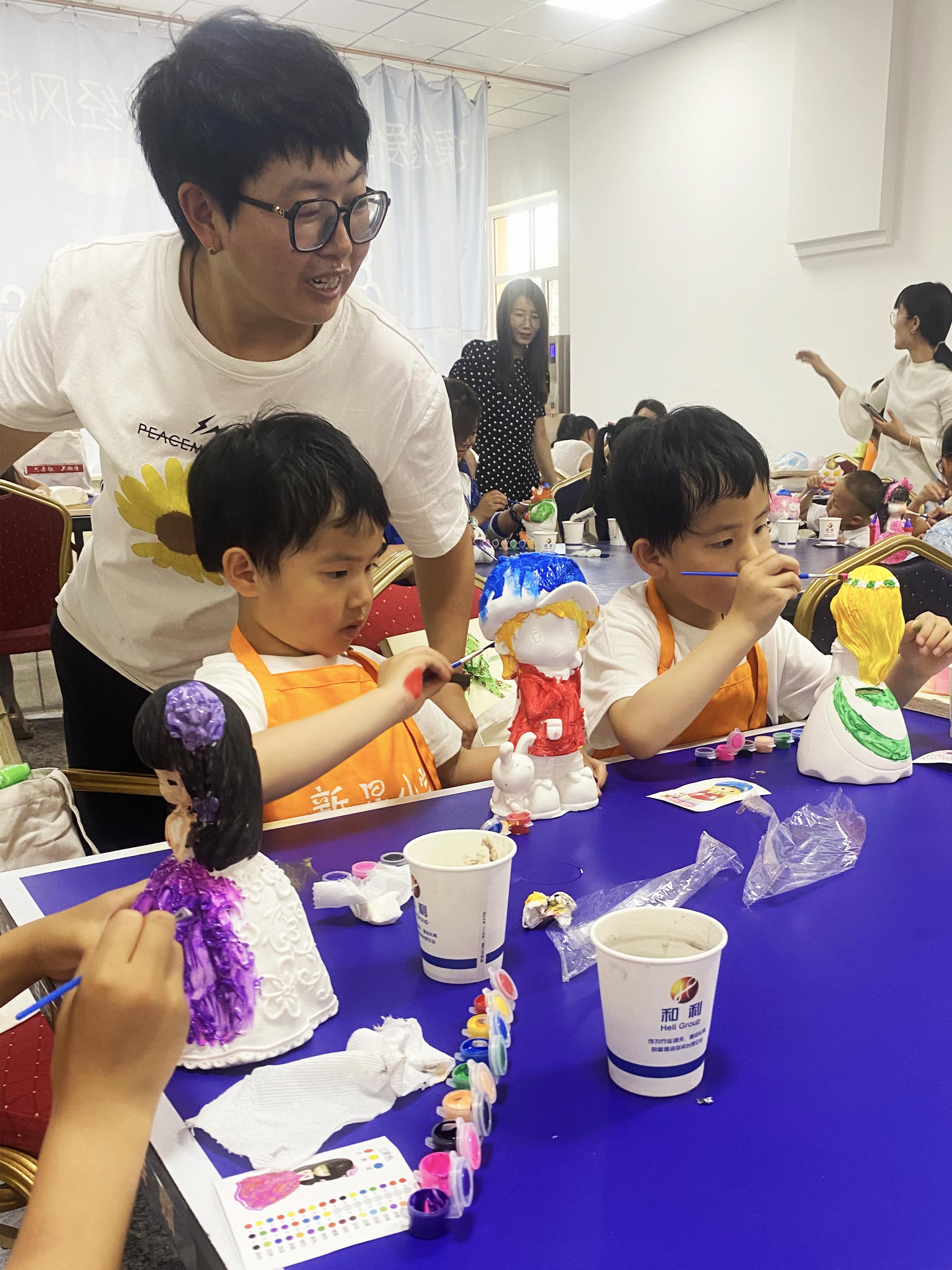 在親子手工彩繪卡通搪膠娃娃中,有哪吒、小公主、小汽車、哆啦A夢、恐龍等諸多卡通形象等著家長與小朋友的DIY彩繪,一個小時后,大家的卡通人物都已經“穿上”了五彩斑斕的花衣,大家都在做一做,畫一畫的過程中體驗了童年的樂趣。增進了孩子與家長之間的情感交流。