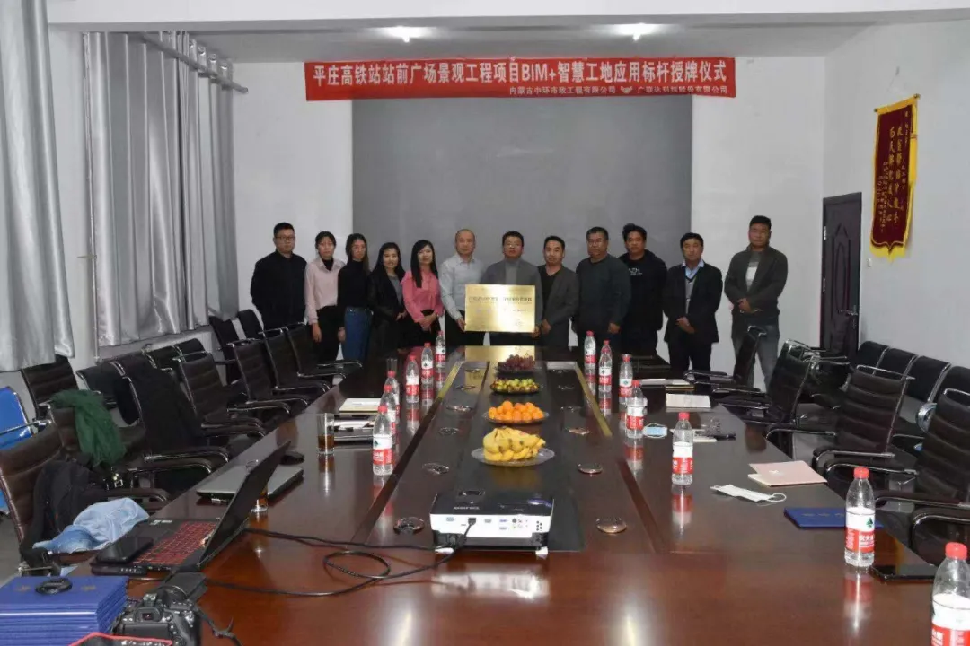 11月9日,中環市政工程有限公司聯合廣聯達科技股份有限公司舉辦了關于平莊高鐵站站前廣場景觀工程BIM+智慧工地應用標桿的授牌儀式,參與此次授牌儀式的嘉賓有:內蒙古中環市政工程有限公司總工張總、財務科負責人趙總、經營科負責人徐總、BIM中心主任張建華、BIM中心成員王曉東、芬江源,平莊項目項目經理顏鳳民,技術員葉自青、曹志龍;廣聯達內蒙分支經理蘇健、實施經理高楊、東部區銷售經理魏志堅、實施顧問王然然。