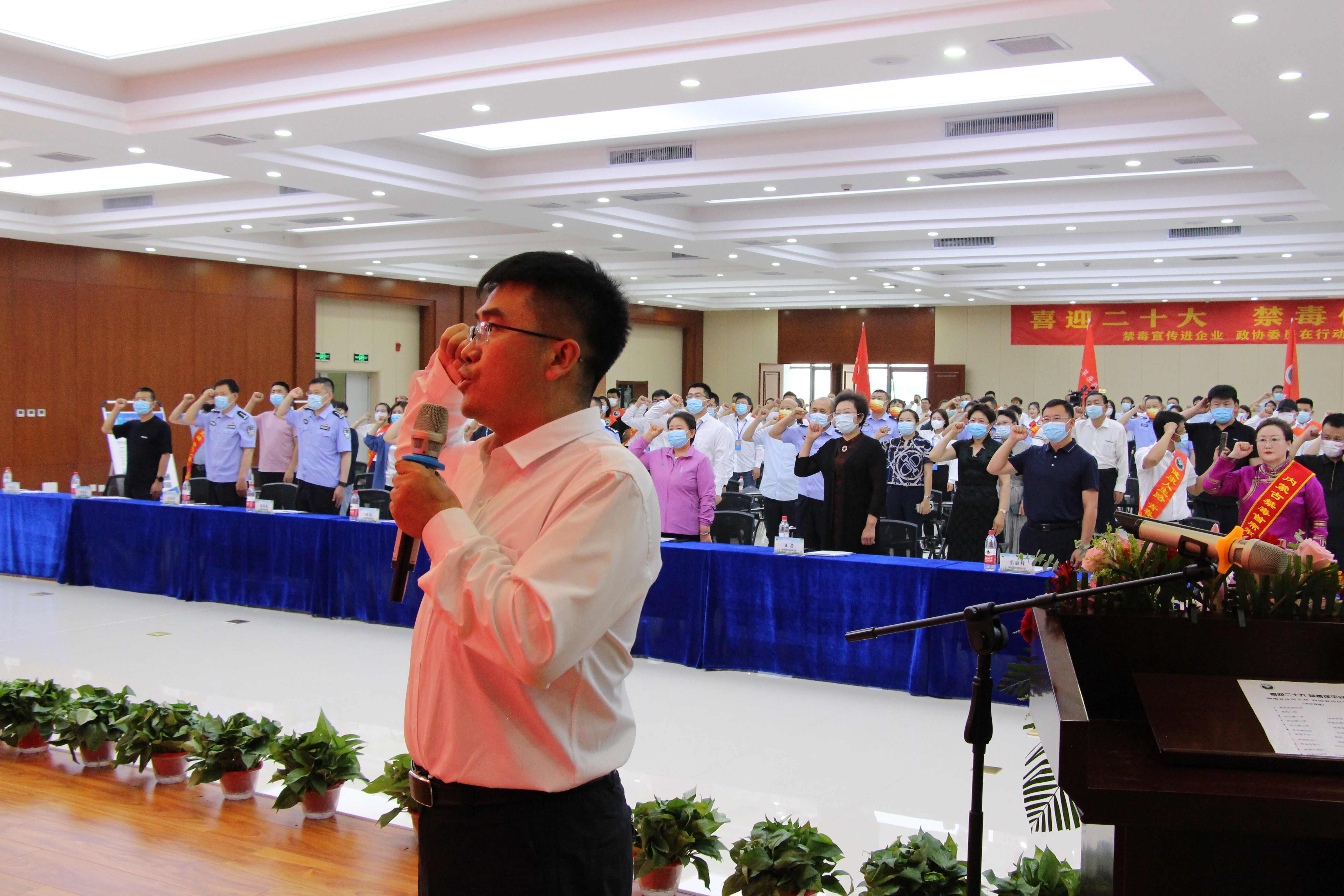 全體與會代表及公司員工在楊金光董事長的領誓下進行莊嚴的禁毒宣誓。