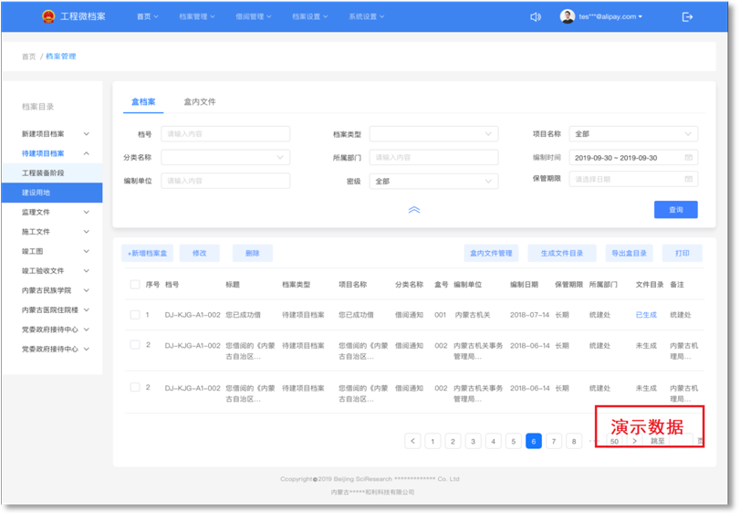 系統(tǒng)實現(xiàn)從工程立項審批、招投標、勘察、設計、施工、建立到竣工驗收等工程建設過程形成的包括報建、報批、施工圖紙、會議紀要、施工日志、聲像、進度表等工程項目資料進行電子信息存檔和管理。系統(tǒng)功能包括檔案盒管理、盒內(nèi)文件管理、檔案類型設置、分類設置、項目基本信息設置、檔案檢索、檔案借閱管理、生成盒內(nèi)目錄、生成文件目錄、生成文件目錄二維碼、生成檔案盒脊背條目等,可通過系統(tǒng)對工程微檔案資料進行整理收集、檔案入盒、檔案檢索、檔案借閱,實現(xiàn)工程微檔案資料的數(shù)字化管理。產(chǎn)品原型展示如下: